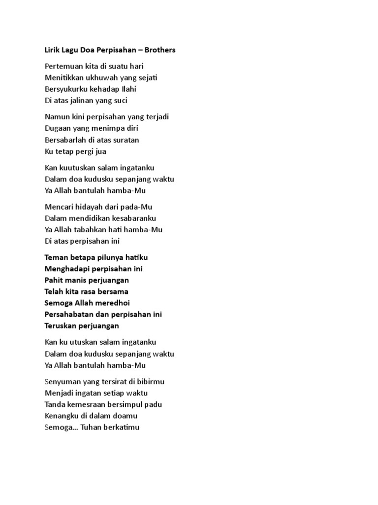 Lirik lagu lirik lagu best lirik lagu Brothers lirik lagu Doa Perpisahan lirik lagu nasyid. Kan Ku Utuskan Salam. Rabu 23 Juni 2021 2317.
