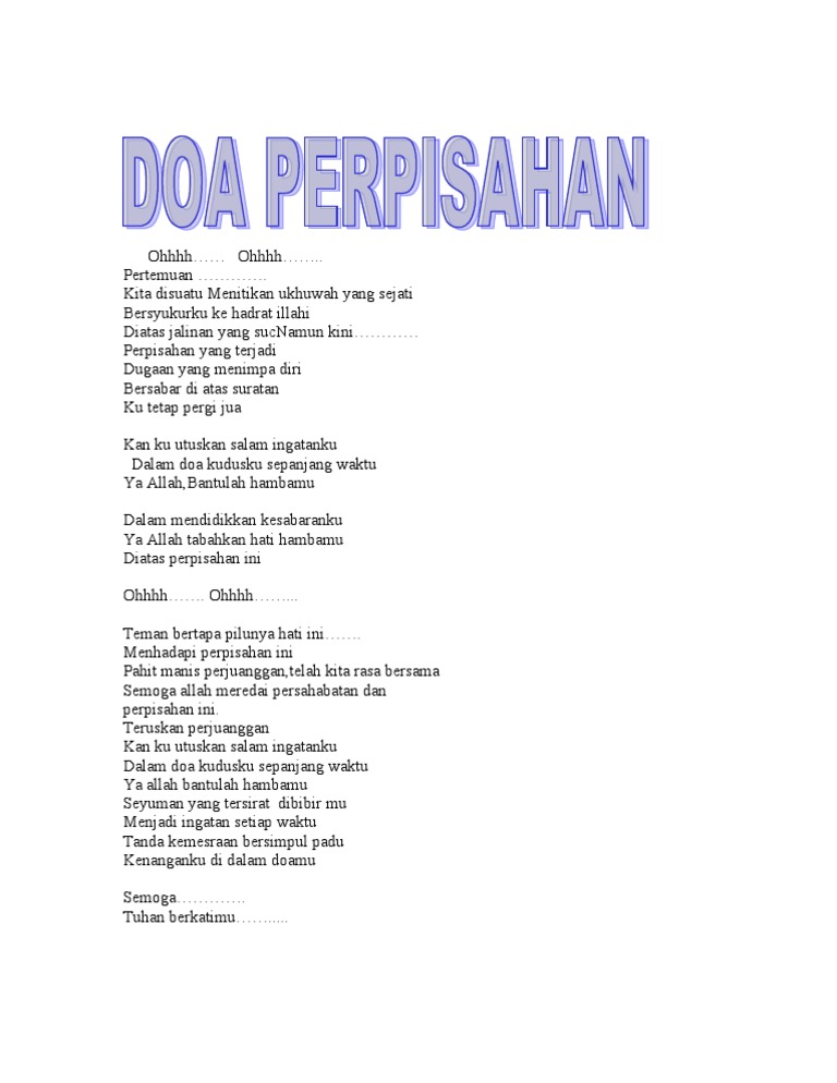 Namun kini perpisahan yang terjadi Dugaan yang menimpa diri Bersabarlah di atas suratan Ku tetap pergi jua Kan ku utuskan salam ingatanku Dalam doa kudusku sepanjang waktu Ya allah bantulah hamba mu. Karena pasti bisa bertemu denganmu. Namun kini perpisahan yang terjadi Dugaan yang menimpa diri Bersabarlah diatas suratan Kutetap pergi jua.